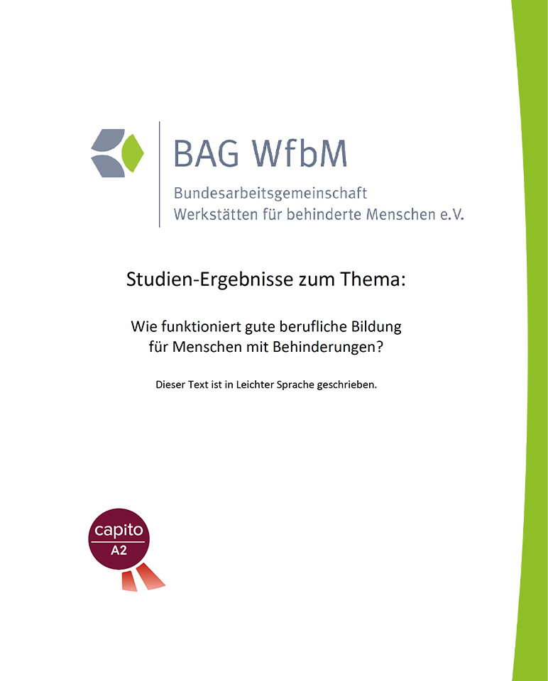 Studien-Ergebnisse zum Thema: Wie funktioniert gute berufliche Bildung für Menschen mit Behinderungen? Dieser Text ist in Leichter Sprache geschrieben.