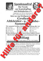 Er ist aber bis heute stichhaltige Nachweise schuldig geblieben, wer bzw. welche Projekte tatsächlich unterstützt werden und was mit dem Erlös aus Kleidersammlungen passiert. Dazu kommt, daß dieser Verein ausschließlich im Zusammenhang mit Sammlungen auftaucht, bei denen Sammeltonnen oder Wäschekörbe vor die Haustür gestellt werden. Es wird also eine bewußt aufdringliche Sammelform eingesetzt, bei der eigentlich vorher die Zustimmung des Grundstückbesitzers eingeholt werden muß. Wir halten diese Sammelform daher für äußerst fragwürdig. Aber genau das hat System: aggressiv sammeln, emotional werben und verschleiern, daß die Kleidung verkauft wird.