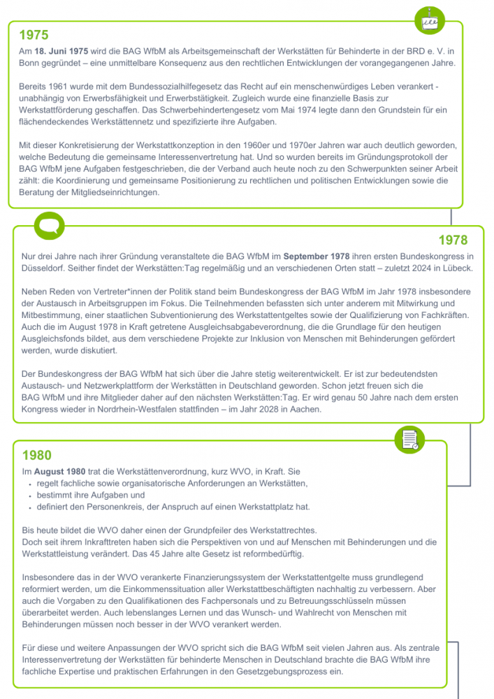 An dieser Stelle präsentiert die BAG WfbM monatlich eine neue, wichtige Etappe – von 1975 bis in die Gegenwart.